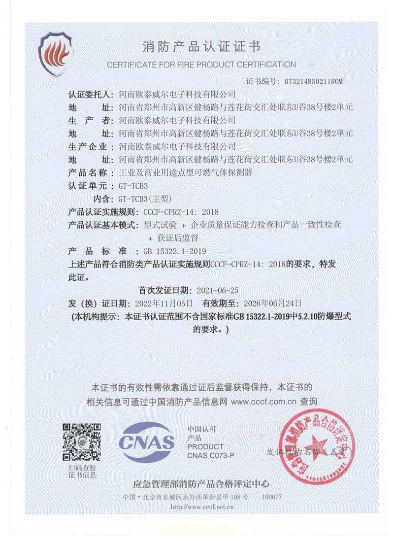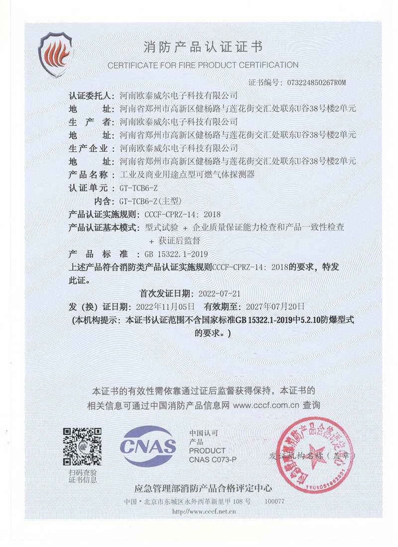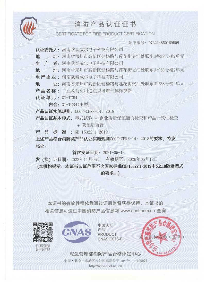 歐泰威爾作為國內(nèi)較知名的物聯(lián)網(wǎng)氣體探測儀器制造商,公司高度重視與國內(nèi)外大專院校的技術(shù)創(chuàng)新與學(xué)術(shù)成果交流,擁有專業(yè)氣體探測研發(fā)機構(gòu),專業(yè)質(zhì)檢生產(chǎn)工藝及相關(guān)檢測設(shè)備,技術(shù)力量雄厚,并不斷致力于產(chǎn)品品質(zhì)提升,公司及產(chǎn)品先后取得國家防爆電氣產(chǎn)品合格證、國家防爆電氣安裝、修理、維護資格證,國家應(yīng)急管理部消防產(chǎn)品CCCF認(rèn)證,國家計量器具形式批準(zhǔn)證書等并在國家權(quán)威部門形式注冊。